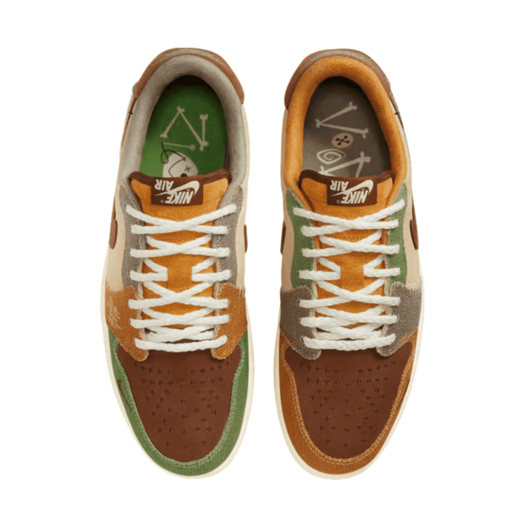 - The Air Jordan 1 Retro Low OG Zion Williamson Voodoo is toned in a mixture of different hues, with moon fossil, oil green, flax, muslin fauna, and sesame being the dominant hues.This Retro Low Air Jordan features a brown suede toe box and a beige suede quarter paneling. The brown upper is contrasted with some rough overlays that come in pale brown, fossil, and oil-green hues. The lateral heel of this shoe features a stitching voodoo doll. There are Zion and voodoo images beneath the heel tabs of this sneaker.The Air Jordan 1 Retro Low OG Zion Williamson Voodoo was retailing at $170 when it hit the market on November 11, 2022.