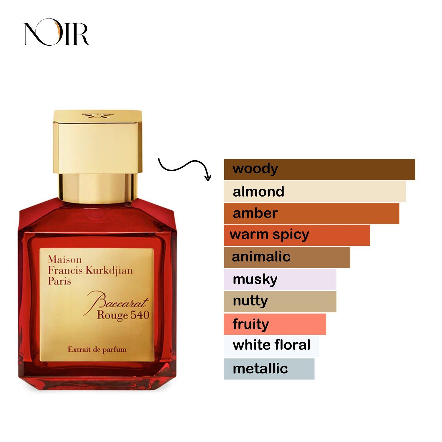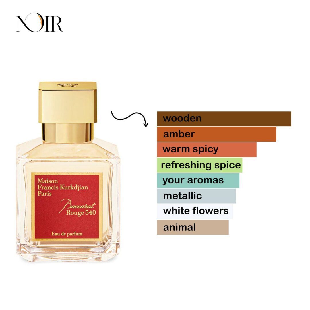 • Baccarat Rouge 540 Perfume by Maison Francis Kurkdjian, A unisex fragrance by Maison Francis Kurkdjian, Baccarat Rouge 540 was launched in 2015 and features a blend of Oriental and floral notes. Earthy base notes include cedar and fir resin, which then blend with ambergris and Amberwood as middle notes. The top notes of Jasmine and saffron mix perfectly with the other aromas to create a floral scent that reminds the wearer of beautiful and fragrant oriental gardens. Men and women alike can spritz this scent on in the morning and wear it well into the night. The soft fragrance will turn heads without overwhelming.