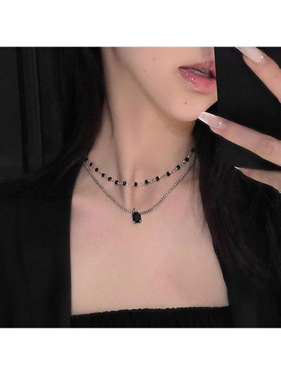 • This is a layered necklace with black beads, stunning double pendant design is guaranteed to elevate your style to a high level of sophistication, and suits even the simplest of outfits.