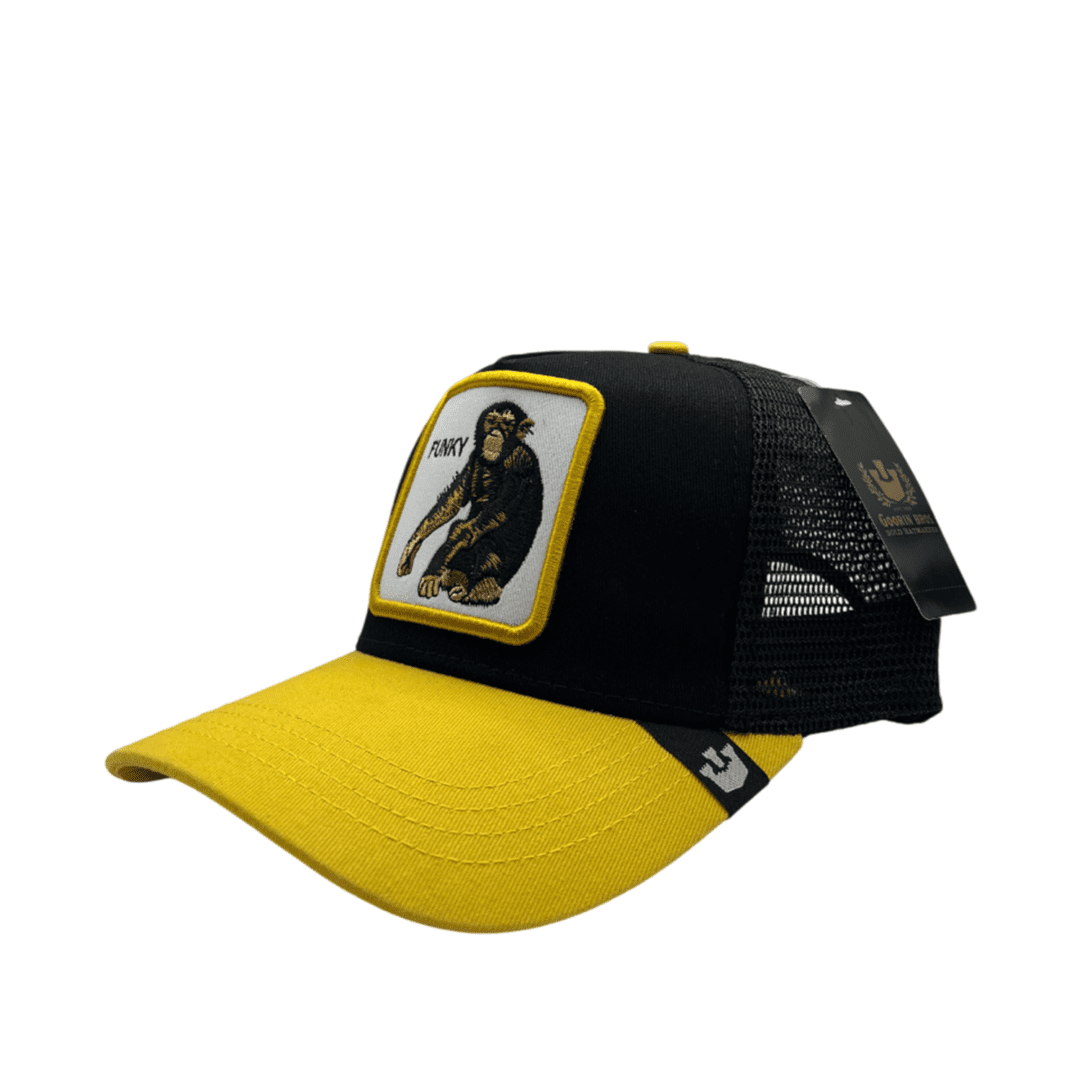 • A stylish youth cap with a distinctive black and yellow design. It features a high-quality fabric front with a stylish monkey embroidery and the word “FUNKY” added to the style. It features a mesh back panel for ventilation and comfort, making it an ideal choice for everyday casual looks.