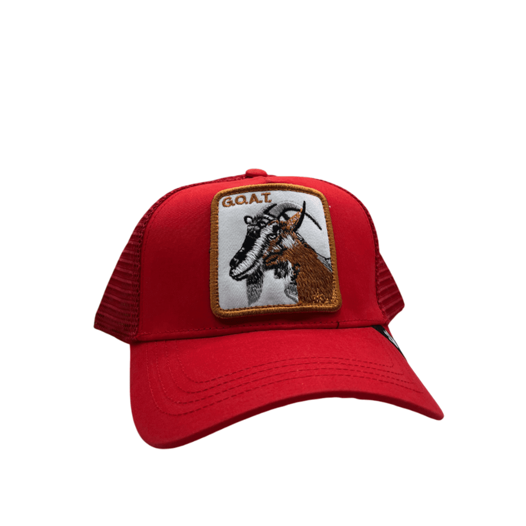 • Make a bold statement with the G.O.A.T Trucker Cap, featuring a vibrant red front panel and breathable mesh back for ultimate comfort. The cap is designed with a detailed embroidered goat patch and the “G.O.A.T” text, symbolizing greatness and excellence. Crafted from high-quality materials, this cap ensures durability and a perfect fit, making it ideal for casual and sporty looks.