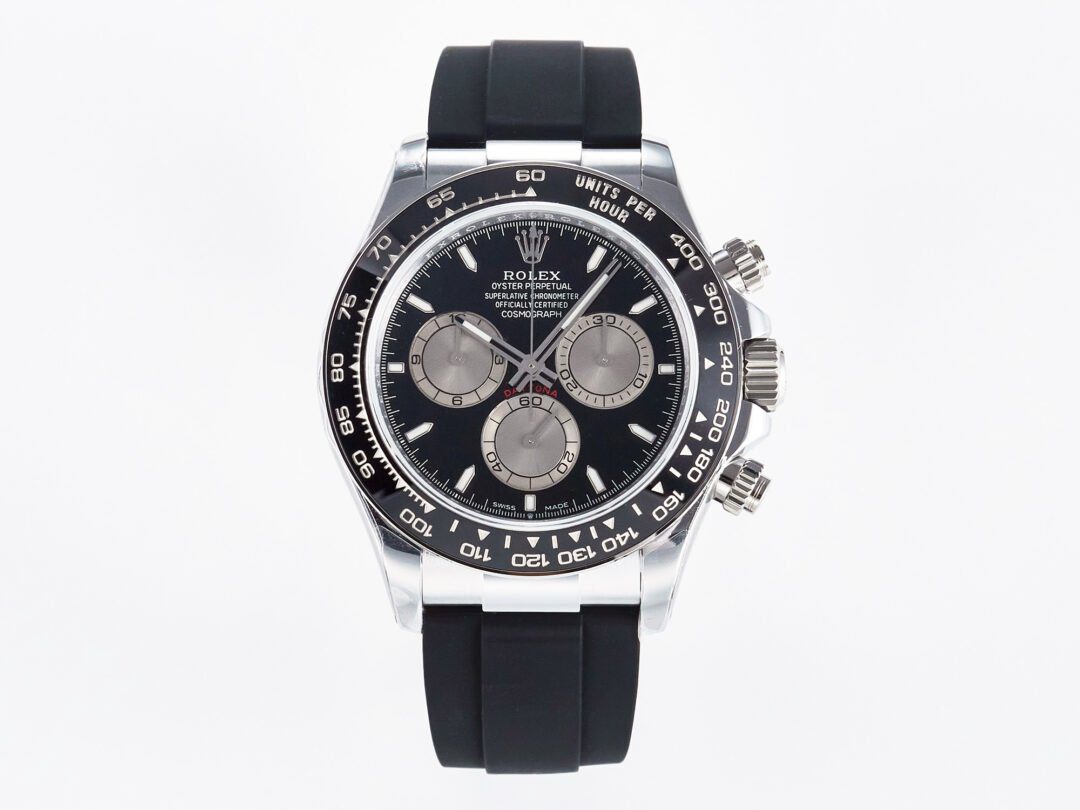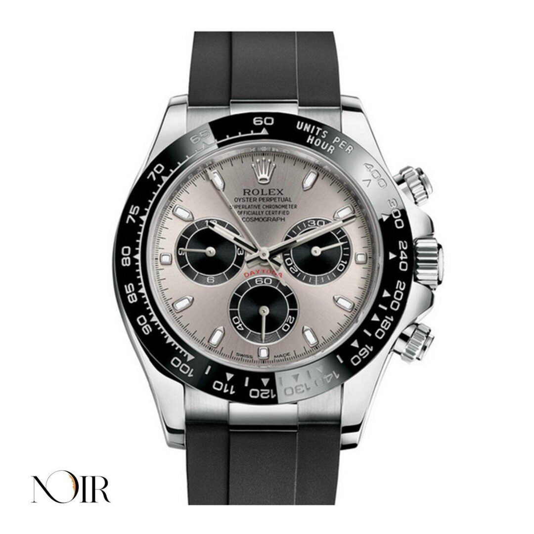 - Add a level of finesse to your watch collection with the Rolex Daytona. The white gold 40 mm case is assembled with a tachymetric, white gold bezel and a water resistance of 330 feet. This timepiece is powered by the self-winding 4130 calibre and a 72-hour power reserve.