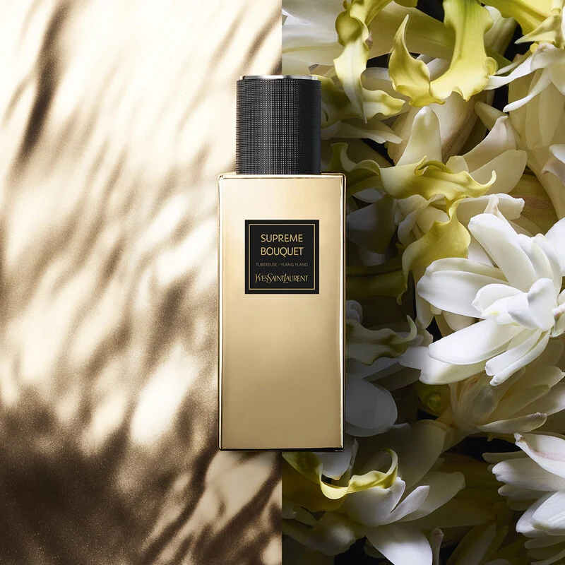 Discover Supreme Bouquet perfume and escape to Yves Saint Laurent’s Majorelle Garden, filled with scented flowers, dressed in vibrant blues and purples. An opulent scent entwined with Tuberose and Ylang-Ylang, much like a floral print.