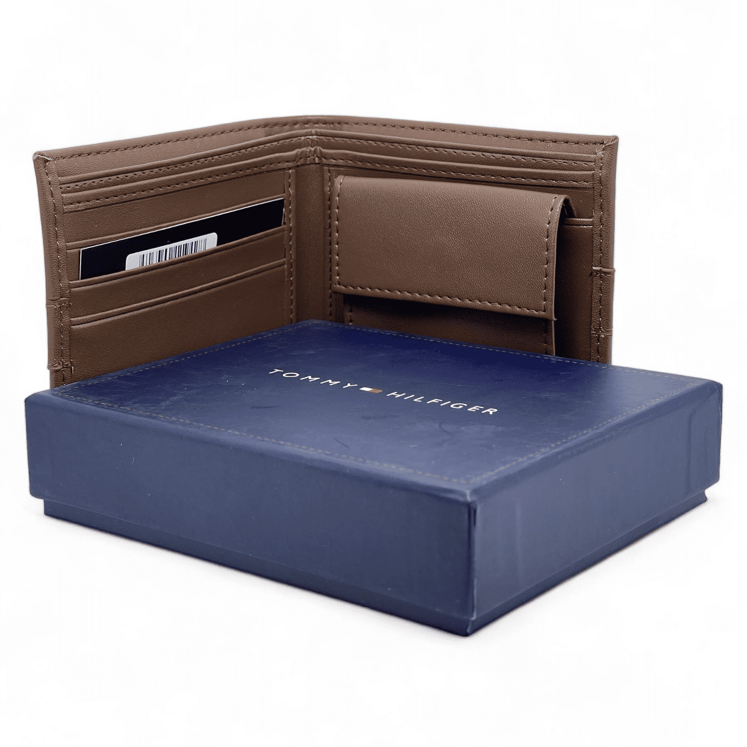 - Elevate your style with the Tommy Hilfiger Milled Men’s Leather Slimfold Wallet. Designed for the modern man, this classic wallet is made from premium leather, ensuring durability and a luxurious feel. With two compartments, two pockets, and eight card slots, it offers ample storage space for your essentials. The slimfold design allows for easy carrying and a streamlined look. Featuring the iconic Hilfiger logo on the front, this wallet exudes timeless sophistication. Stay organized and secure with the built-in RFID protection, keeping your cards safe from unauthorized scanning. Add a touch of refinement to your formal attire with this small-sized, yet versatile accessory.