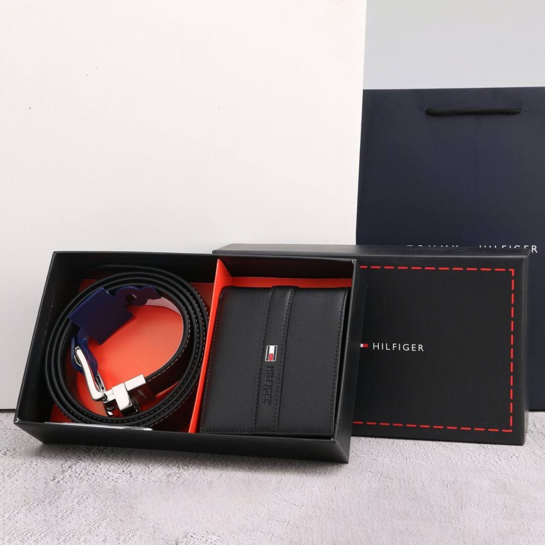 • Tommy Hilfiger Set Wallet & Belt In Egypt For men Genuine Leather Black Color Mirror Original . Packing List Tommy Hilfiger ( Bag + Box )